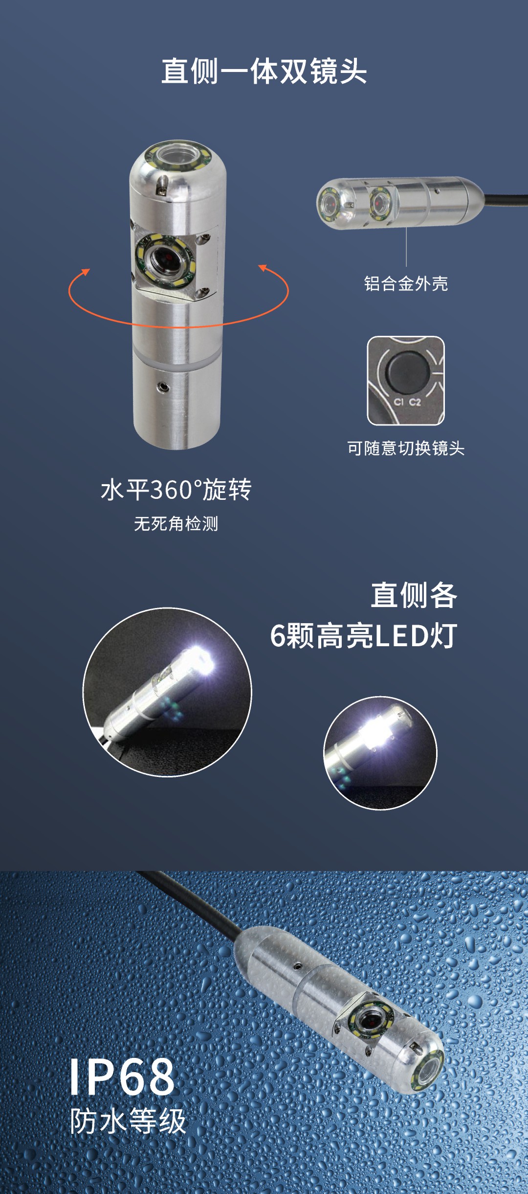WS22系列360°旋轉雙攝像頭內窺鏡