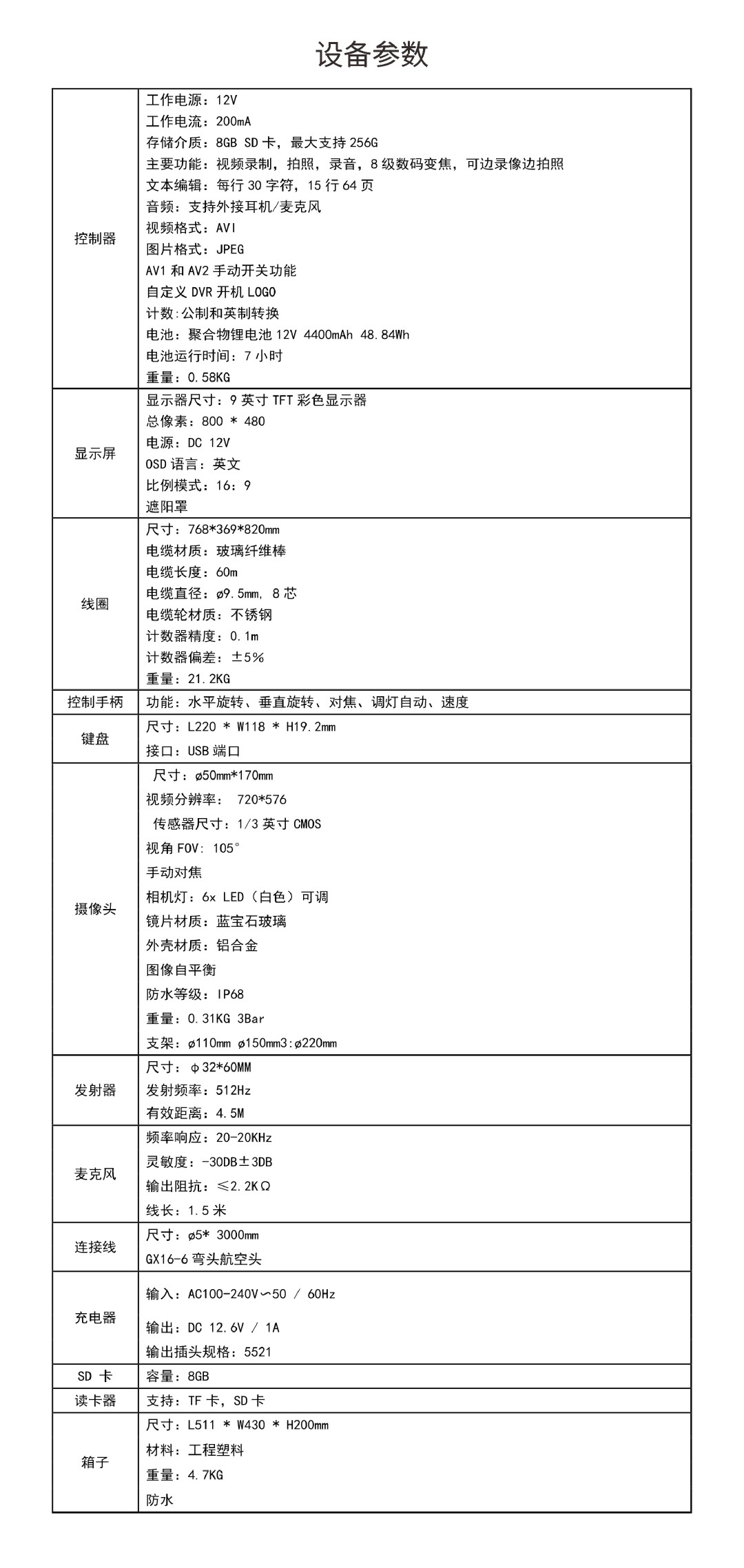 規(guī)格參數(shù)